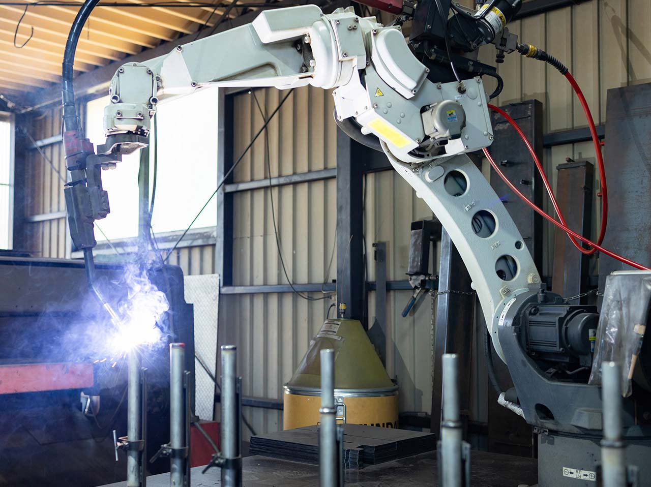 ダンプカーなどの特装車に使われる部品の製造を行っています。機械加工をはじめ、レーザー加工、プレスブレーキによる板金加工、汎用、ロボットによる溶接作業などに対応。素材からの切り出しや張り合わせを行いながら、より高い強度や耐久性を追求しています。